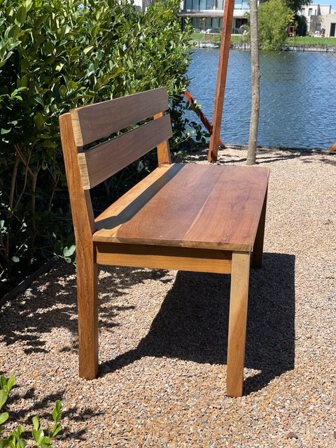 banco realizado en madera maciza de lapacho seleccionado. La terminación de la madera está realizada con laca protectora apta exterior.
