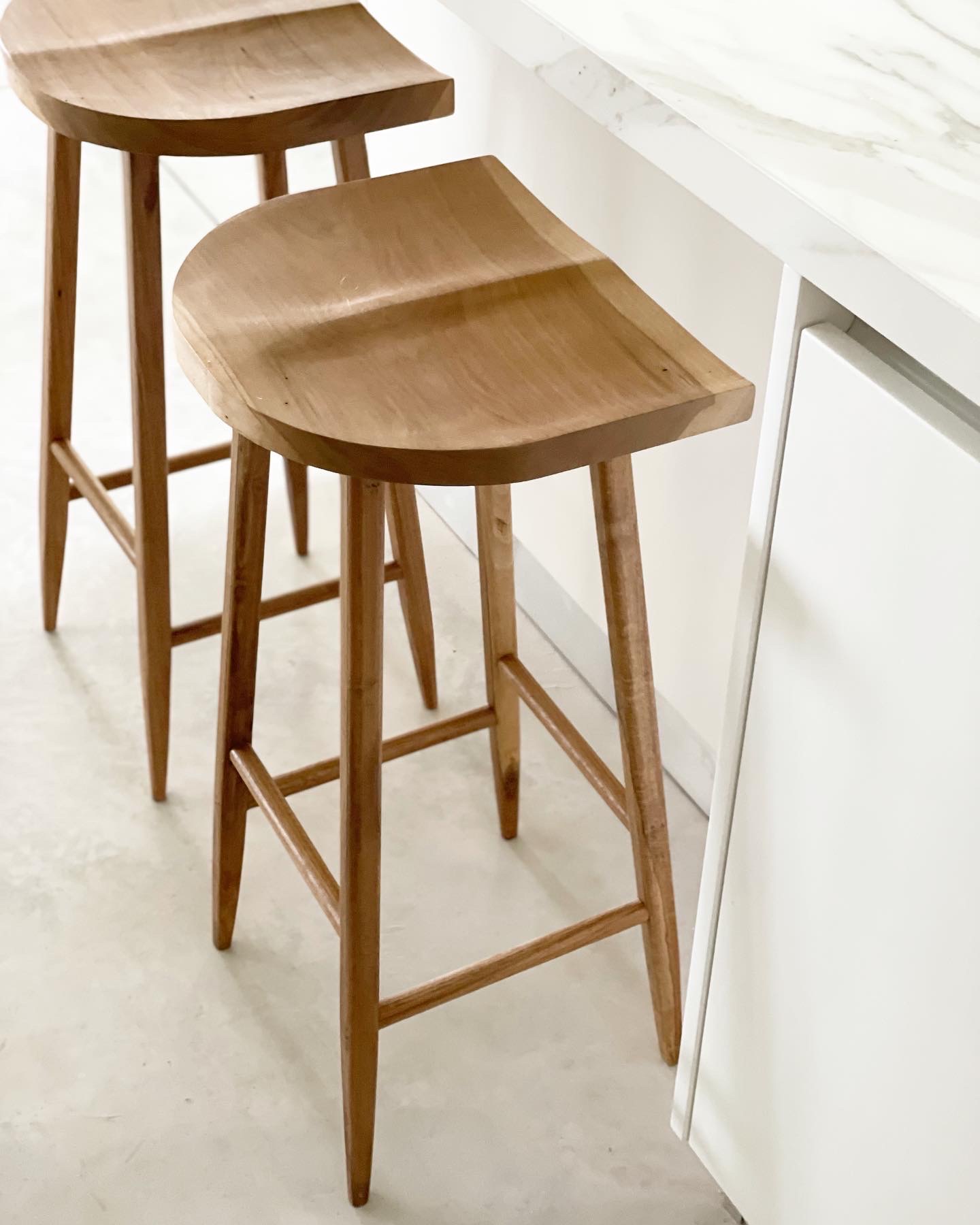 Banqueta en madera maciza de petiribi sin respaldo y con asiento y patas torneadas. Asiento de 0.37 x 0.31. Altura total de la banqueta 0.72cms. Terminacion de la madera: hidrolaca semi-mate.