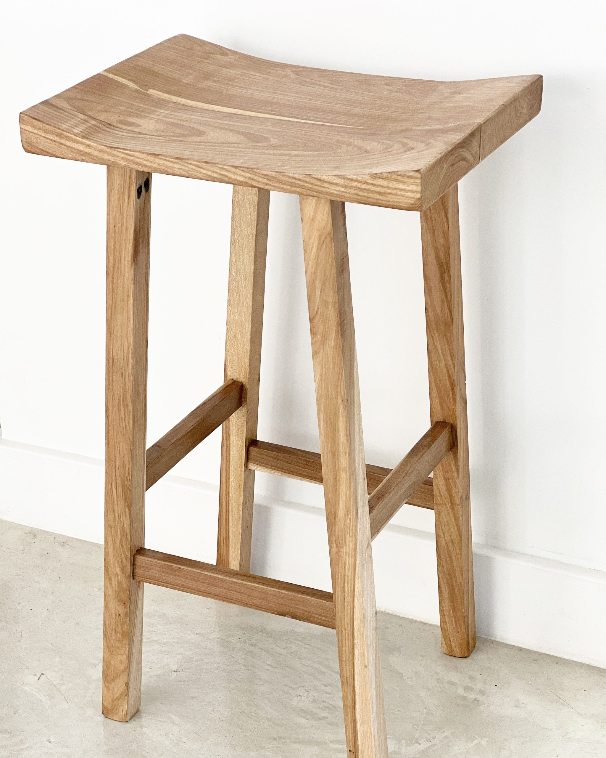 Banqueta en madera maciza de petiribi sin respaldo, con patas inclinadas y asiento de 2″. Asiento de 0.34 de profundidad x 0.45 de largo. Altura total de la banqueta 0.75cms. Terminación de la madera: hidrolaca semi-mate.