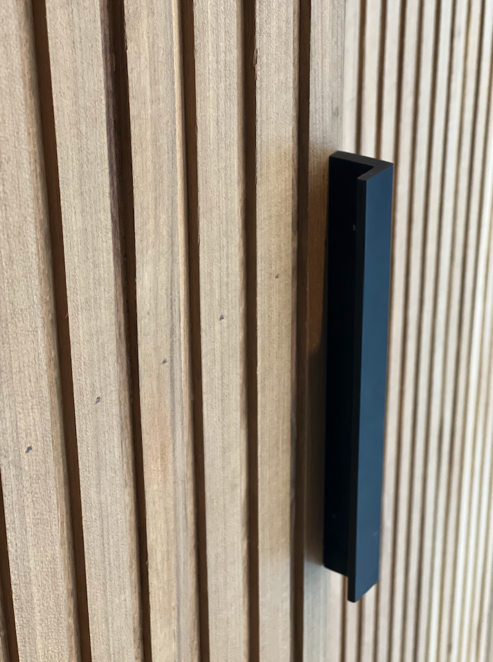Tirador rectangular de 16cms de largo x 0.02cms de ancho en aluminio color negro. Incluye tornillos para su colocacion. Terminacion: mate (no es brillante).